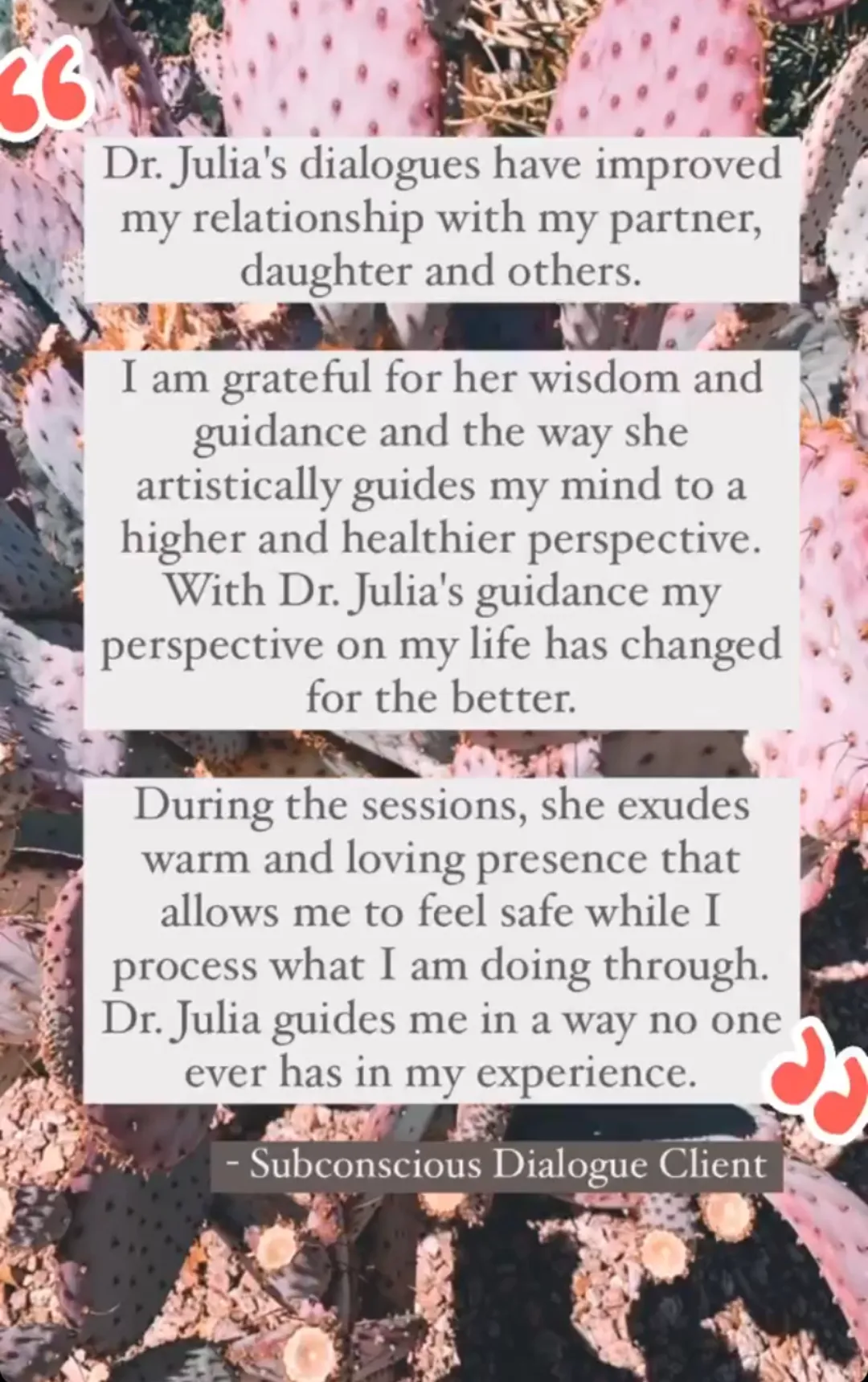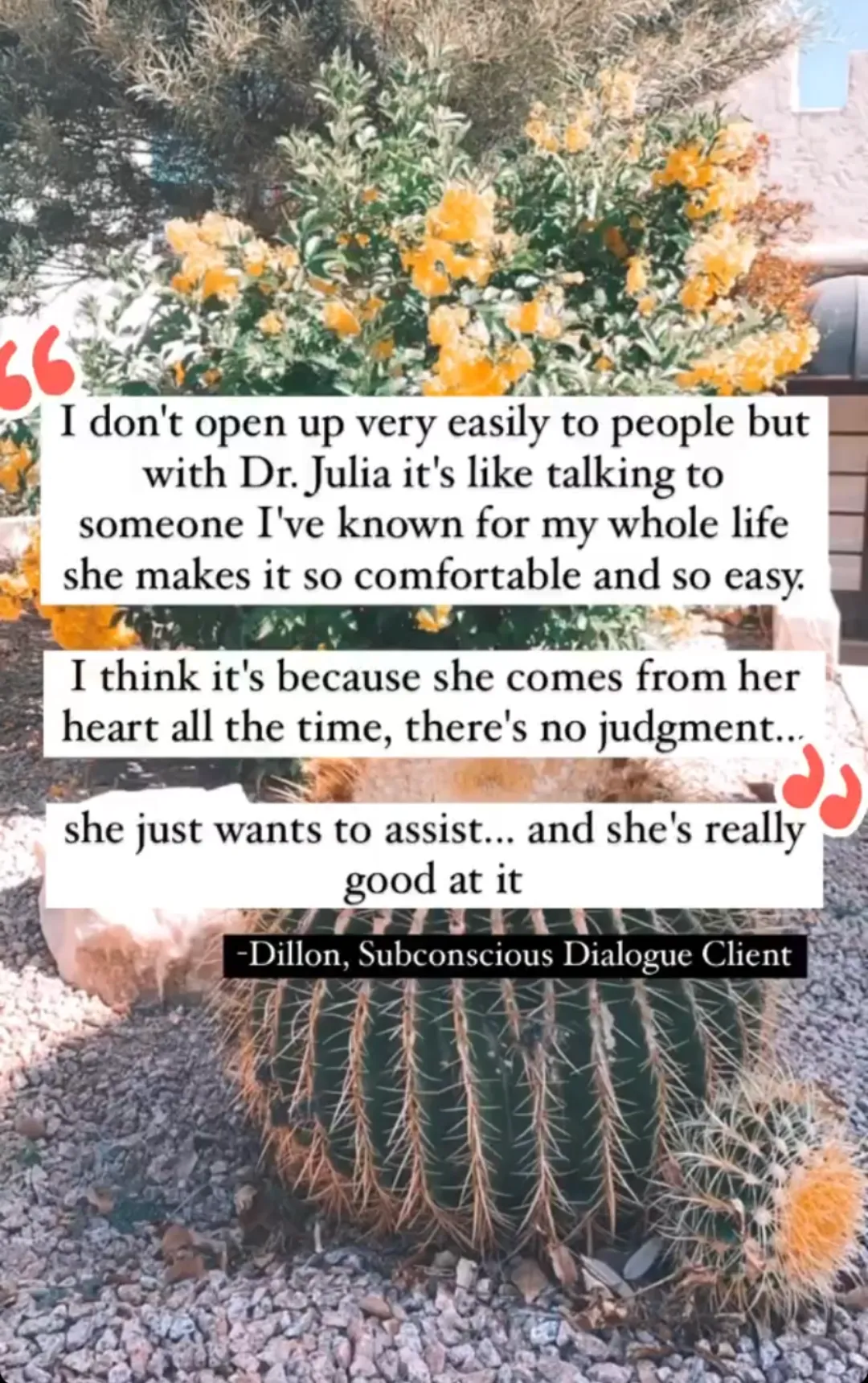 "She listens to me and makes me feel 100% supported. She goes the extra mile to ensure that I have a safe, open collaborative space where I can be 100% vulnerable.